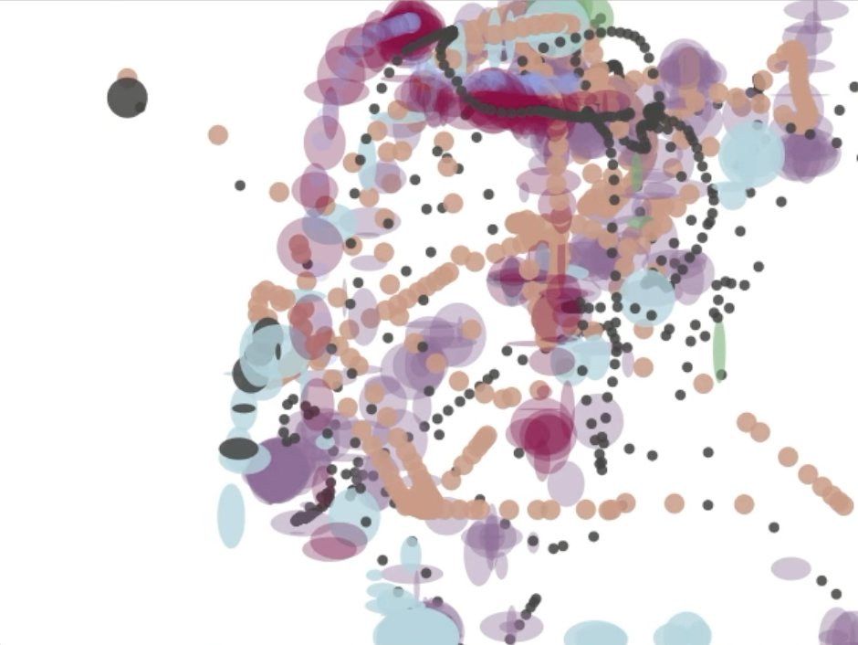 After observing Elok’s painting on canvas, the team tried to replicate his style using similar brush styles created by code. The colors harken to color palettes used by abstract expressionists—Jackson Pollack, Helen Frankenthaler, and Sam Gilliam.